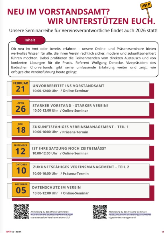 Chöre und Gesangvereine sind angesichts der aktuellen gesellschaftlichen Entwicklungen vor besondere Herausforderungen gestellt und mit vielen entscheidenden Fragen konfrontiert: Wie können wir neue Mitglieder finden? Was bieten wir möglichen Mitgliedern? Was brauchen sie und was wünschen sie sich? Wie organisieren und strukturieren wir uns? Welche Aufgaben können wir erfüllen, welche nicht? Wie können wir die Aufgaben des Vorstands auf mehrere Schultern verteilen?