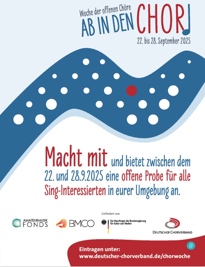 Weitere Informationen und Unterlagen zum Download: https://www.deutscher-chorverband.de/chorpraxis/chorwoche