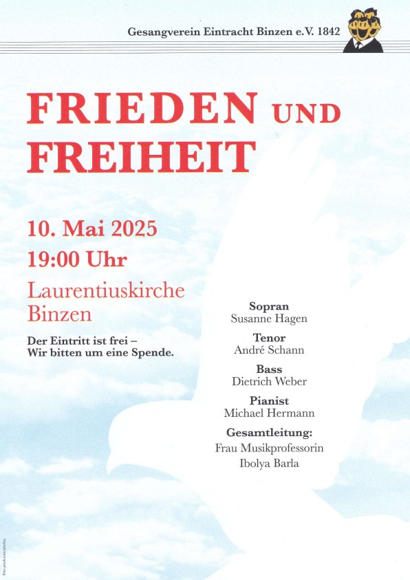 Unter dem Motto "BINZEMER HITEXPRESS" haben wir mit unserer Dirigentin Ibolya Barla ein Feuerwerk aus anspruchsvollen Chorgesang und modernen Melodien zusammengestellt die wir Euch gerne präsentieren möchten.