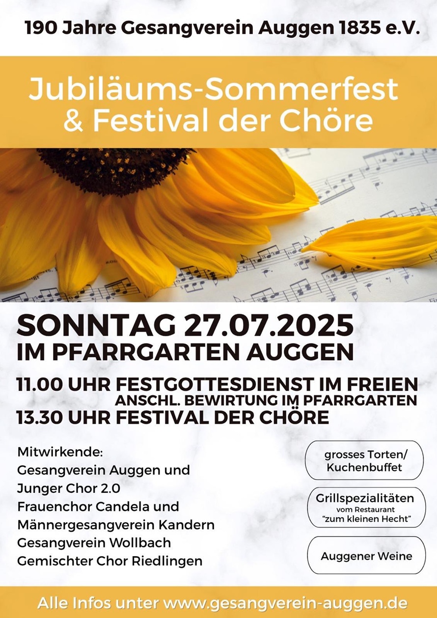 und dem mit Projektsängern verstärkten Gesangverein Wollbach freuen wir uns auf Euren Besuch. Gemeinsam wollen wir unsere Jubiläen feiern.