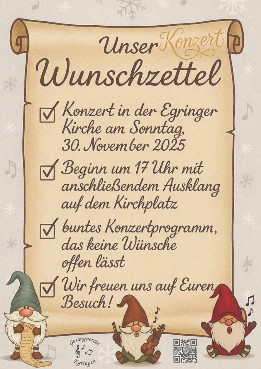 Der Gesangverein Egringen lädt Sie herzlich ein zu einem besonderen musikalischen Abend unter dem Motto „unser Konzertwunschzettel“.