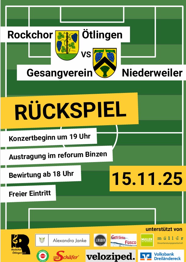 Nach dem erfolgreichen „Heimspiel“ des Gesangvereins Niederweiler im vergangenen Jahr heißt es am Samstag, 15. November 2025, im reforum Binzen: Anpfiff zur musikalischen Revanche!