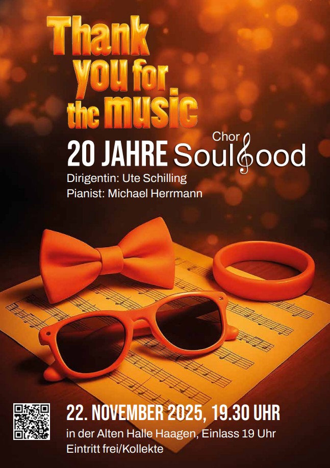 Anlässlich von 20 Jahren Soulfood möchten wir Sie ganz herzlich zu unserem Jubiläumskonzert am 22.11.2025 in die alte Halle in Haagen einladen.